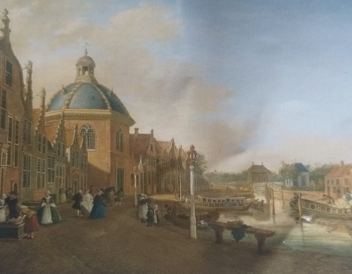 Wat een heerlijk zonnige dag was het. We zijn vanaf de molen gezamenlijk naar de dorpskerk gelopen, die eigenlijk in het oude dorp Stompwijk ligt, maar wel onder de gemeente Leidschendam-Voorburg valt. We werden door de koster en assistent-koster ontvangen. Waar komt de naam 'Peperbus' vandaan? Vroeger had de kerk een koepeldak waardoor de achtkantige kerk op een peperbus leek. Nu is er een puntdak, waarmee het eigenlijk een zoutvaatje is geworden. Het is een protestantse kerk uit de zeventiende eeuw, gebouwd door de stadsbouwmeester van Leiden. Deze bouwde o.a. ook de Lakenhal. In de kerk vind je het wapen van Leiden, omdat het gebouw in de ambachtsheerlijkheid van Leiden lag. De luidklok, de kansel en de 'ambachtsherenbank', waarop de lokale ambachtsheren de dienst volgden, stammen nog uit de 17e eeuw. Vanaf 1652 zaten er gebrandschilderde ramen in de kerk die waren geschonken door de